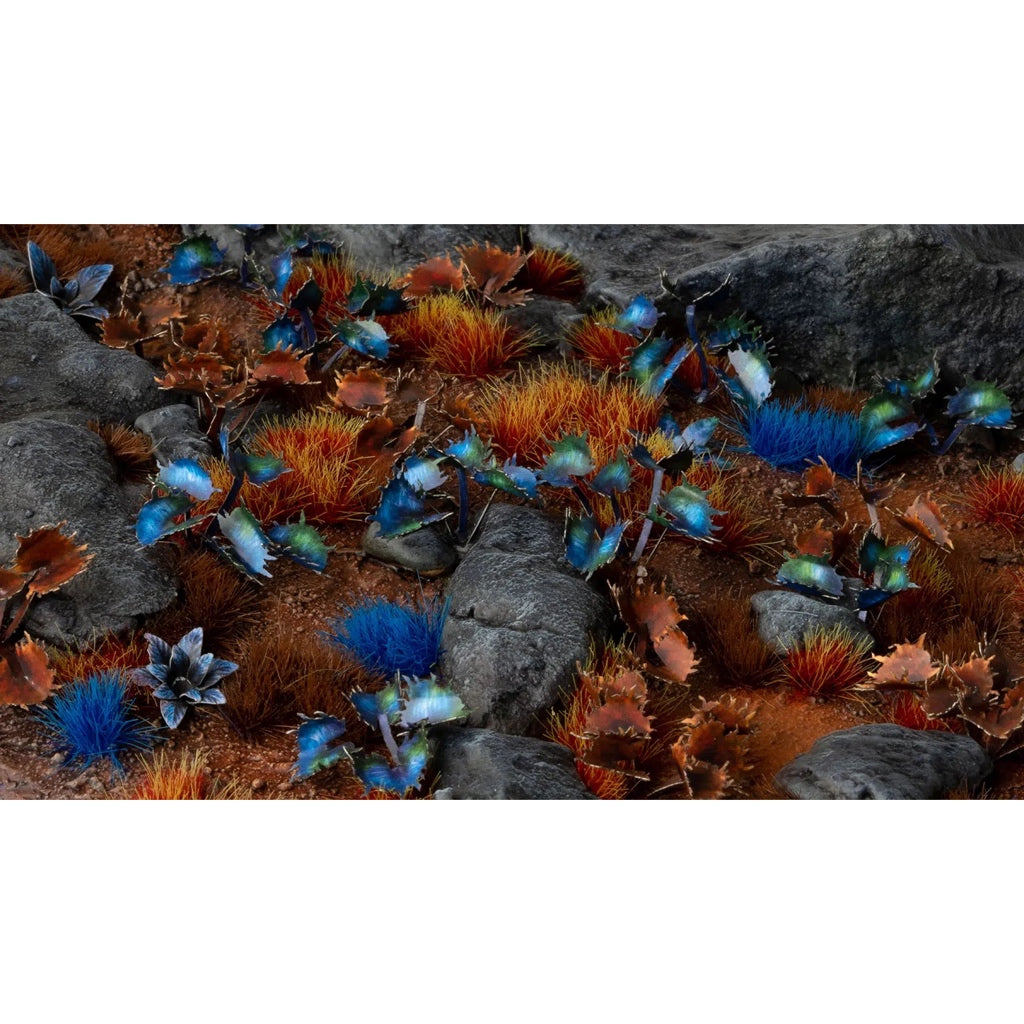 Alien flytraps (named after the earth Dionaea plants) are giant bright-blue-coloured glowing carnivorous plants, becoming reddish-brown and poisonous with maturation. They are great to give danger and beauty to your scenes.