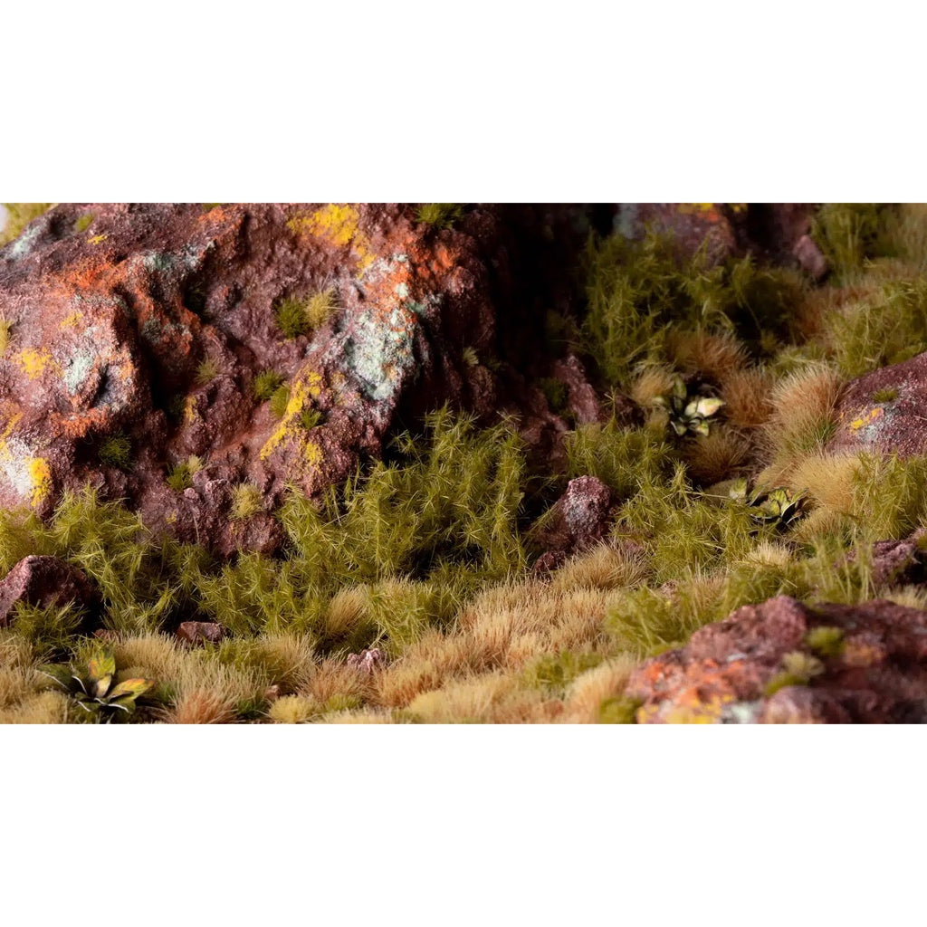 Long-sized tufts with dense and ramified branches in a green colour. Best used to recreate dense patches of thorny shrubs. Combined with Yellow Flowers will replicate gorse spiny scrubs, common in all temperate regions. Also to be used in combination with other sizes and colours, giving your scenes a realistic height diversity and convincing plant stratification.
