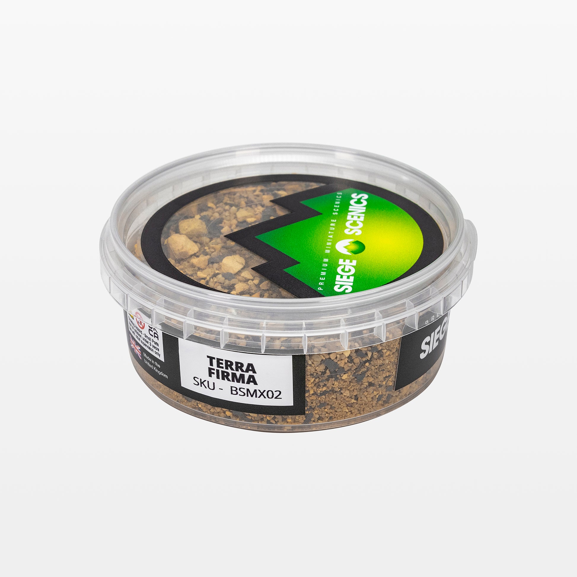 Bring your miniatures back to solid ground with Terra Firma, a natural earth basing mix from Siege Scenics. This versatile blend of soil textures, grit, and organic fragments is perfect for building realistic rural roads, barren fields, or grounded fantasy realms.