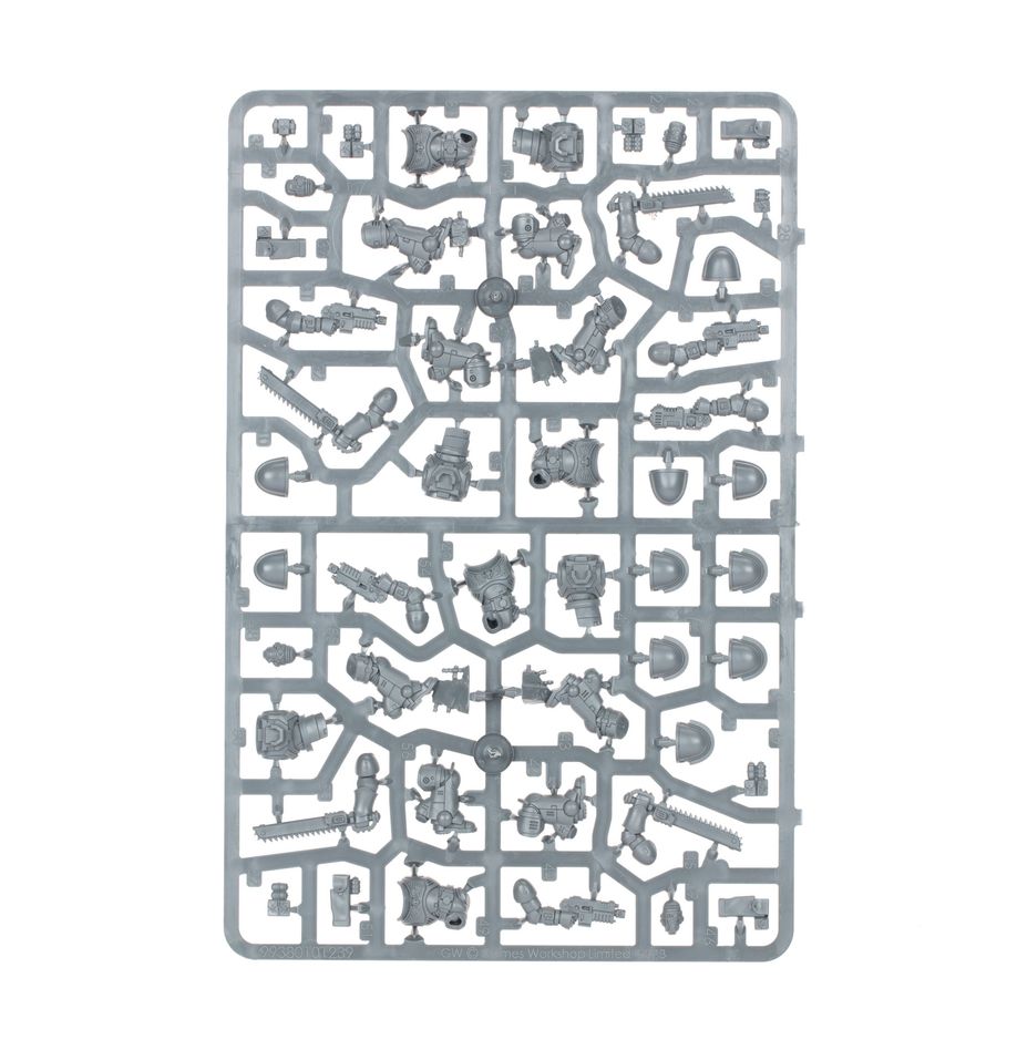 The miniatures in this box are easy to customise. The Jump Pack Captain can be armed with a chainsword, relic blade, or power fist, alongside a heavy bolt pistol, hand flamer, or plasma pistol. He also has a choice of two heads – bare or helmeted.