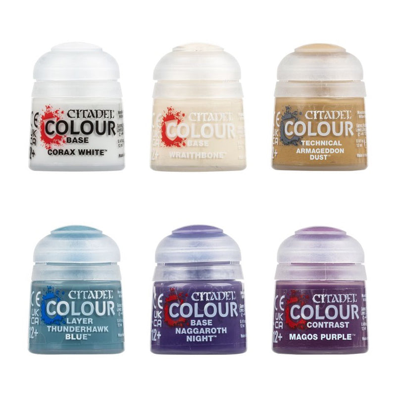 The six Citadel Colour paints are supplied in 12ml pots and feature the essential colours needed to paint the miniatures in the colours of Hive Fleet Leviathan, as well as a Technical paint to create textured bases: