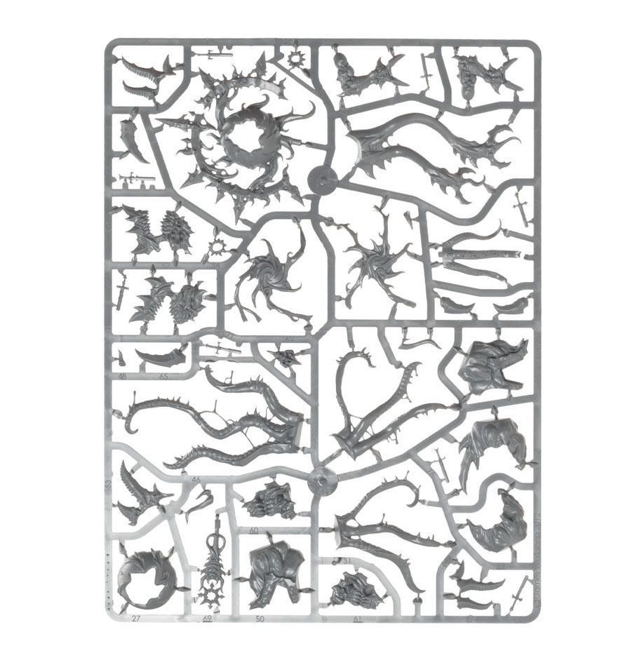 This multipart plastic kit builds one Mutalith Vortex Beast, a grotesque creature for your Thousand Sons armies in games of Warhammer 40,000 or your Slaves to Darkness armies in games of Warhammer Age of Sigmar. They have a star-like halo of raw Chaos energy suspended above their backs, and nine huge tentacles – each dripping with ichor – extend from a gaping, eyeless mouth. These twisted monstrosities are an ideal way to spread madness and mutation across the battlefield.