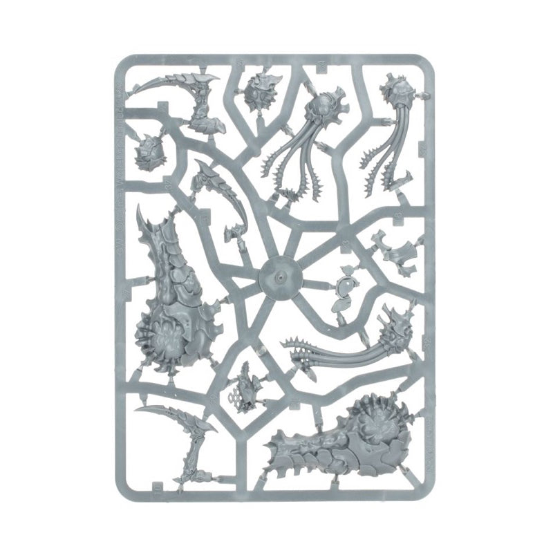 This multipart plastic kit builds a Biovore – a sentient Tyranid mortar – as well as three floating Spore Mines. The Biovore's lumbering form supports a symbiotic dorsal launcher, its spore-sac bulging with biological explosives waiting to be fired. The Spore Mines can be launched onto the battlefield by the Biovore, or simply rain down from the skies. The kit offers several alternate leg poses and basing elements for the Biovore, as well as three distinct designs of Spore Mine, allowing you to maintain variety in your brood as you build a whole battery of artillery-beasts.