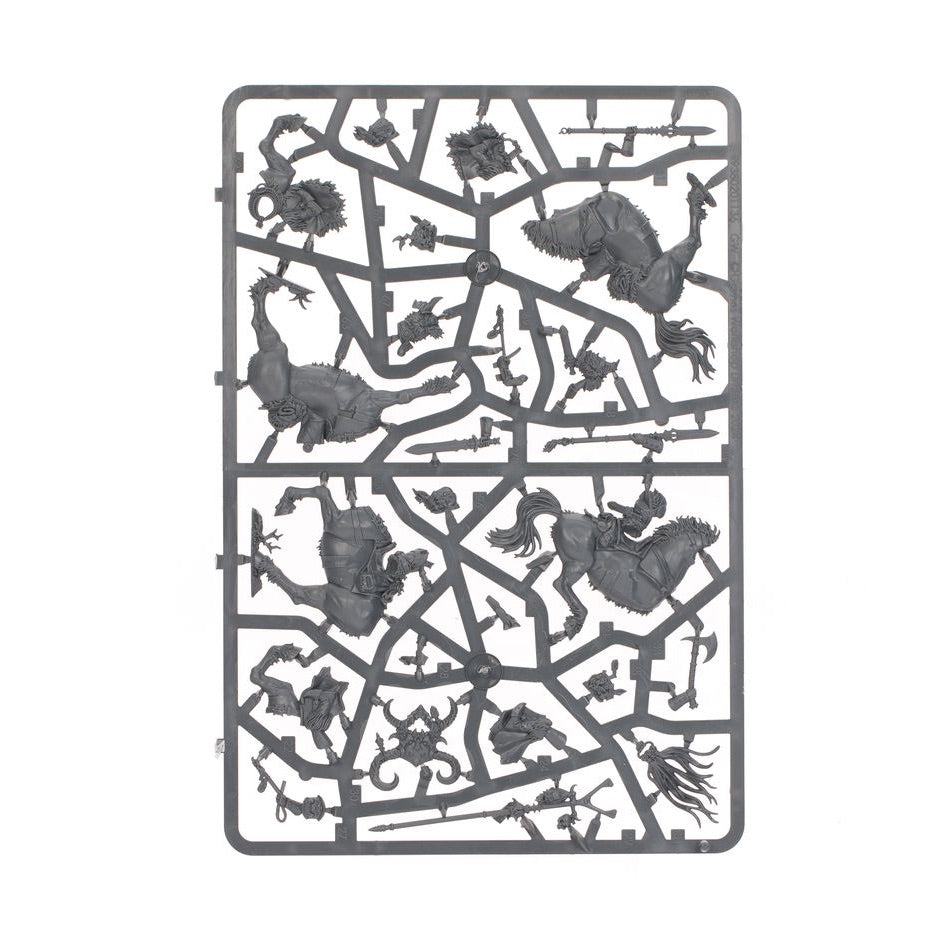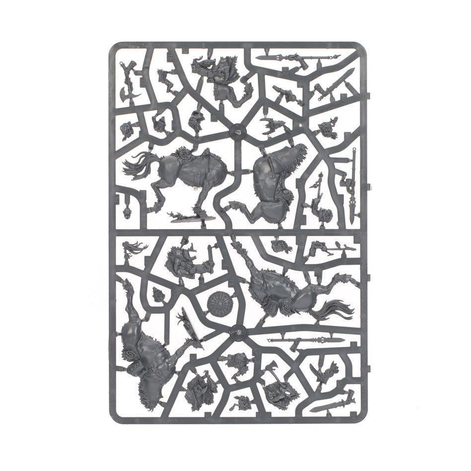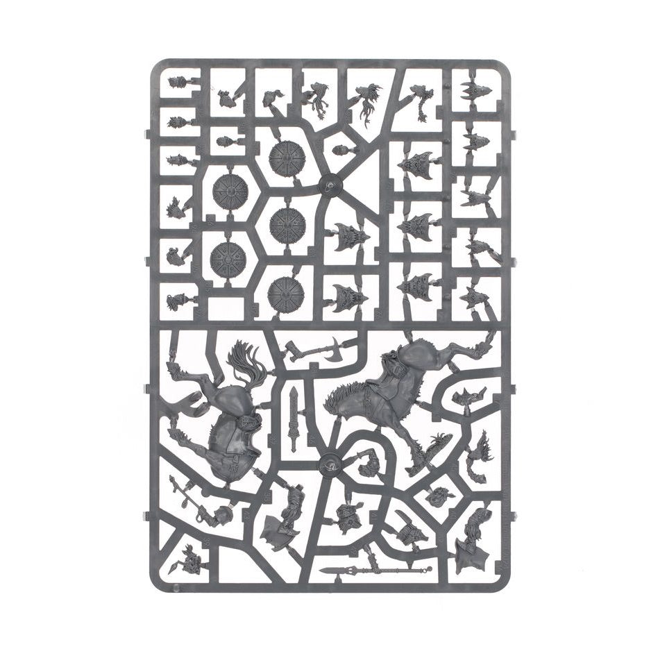 The sinister horse-muzzles, studded shields, decorated steed-armour, lethal weapons, and fearsome heads in this kit are all interchangeable between models, giving you a huge variety of ways to build your ruthless raiders.