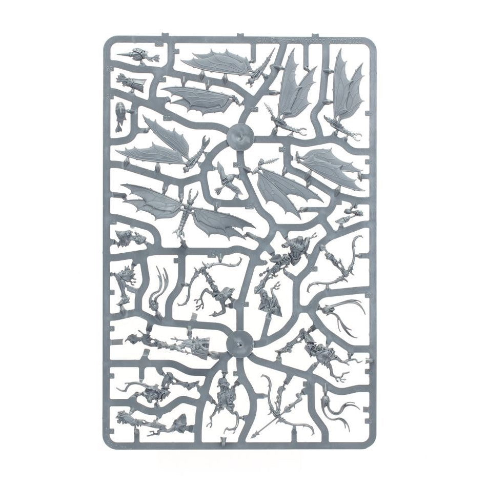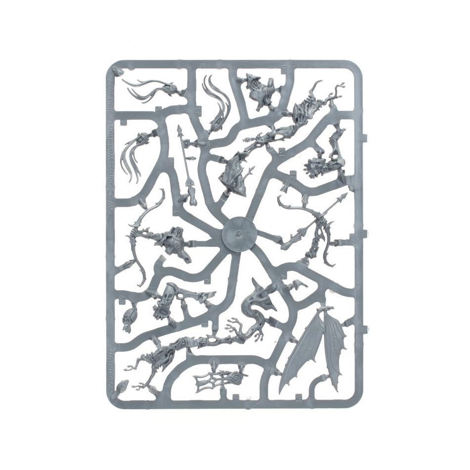 This multipart plastic kit builds five Gossamid Archers, a swift mid-range harassment unit for Sylvaneth armies. Each Gossamid Archer has a distinctive pose and appearance, and one can be assembled as a Flitwing Scion with a diadem and ornate tabard. This set includes five different designs of zephyrwing spites and quiverbugs, each of which can be equipped to any one of the Gossamid Archer bodies, allowing you to mix-and-match your Archers for a wider variety of appearances across your army.